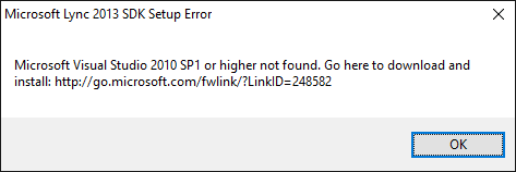 Not sure why it was asking for Visual Studio 2010, one would make a pretty reasonable guess that the installer would contains few DLLs (references to object model & web service APIs), sample code and maybe help docs etc. Of course I was not willing to go back to VS 2010.